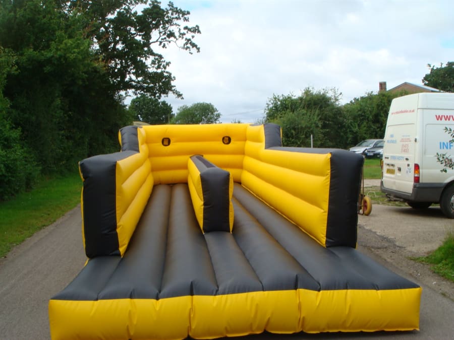 This inflatable can be used indoors or outdoors on suitable flat surfaces. It works well in sports halls, community centres and marquees, as well as outdoor venues such as school fields and private gardens.